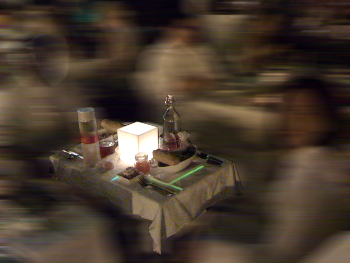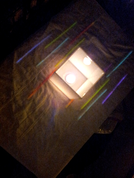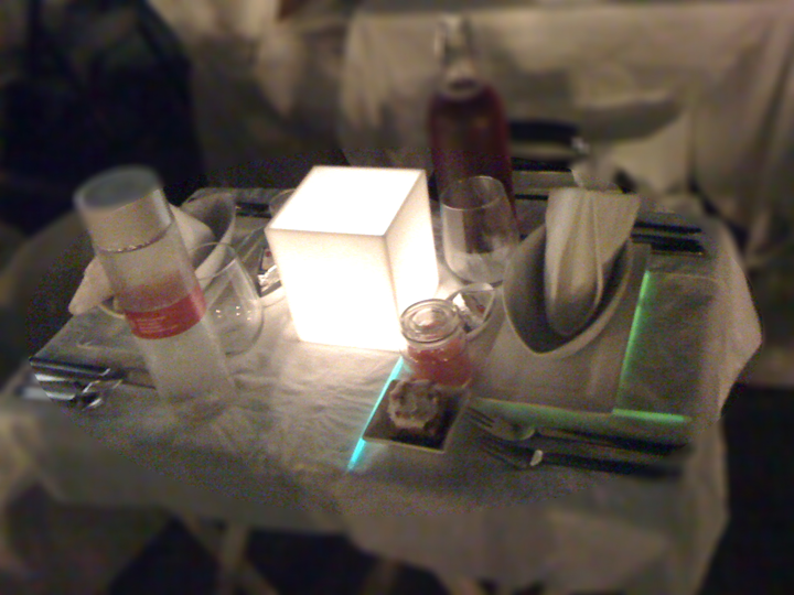 I decided to apply the skills I’ve learned from Taliesin to this popup picnic. I started to sketch some ideas on how I would design/arrange the table setting. The chairs would be part of the whole composition as well. The design concept is based on an abstraction of the lakefront harbor overlooking Lake Michigan and the boats/ships passing by. The central object, a luminous cube represents the Chicago Harbor Lighthouse. Fortunately, the dinnerware I already own is actually shaped like a boat! I incorporated some diffused lighting effects at the plates’ edges, drawing inspiration from the lighting stylings of