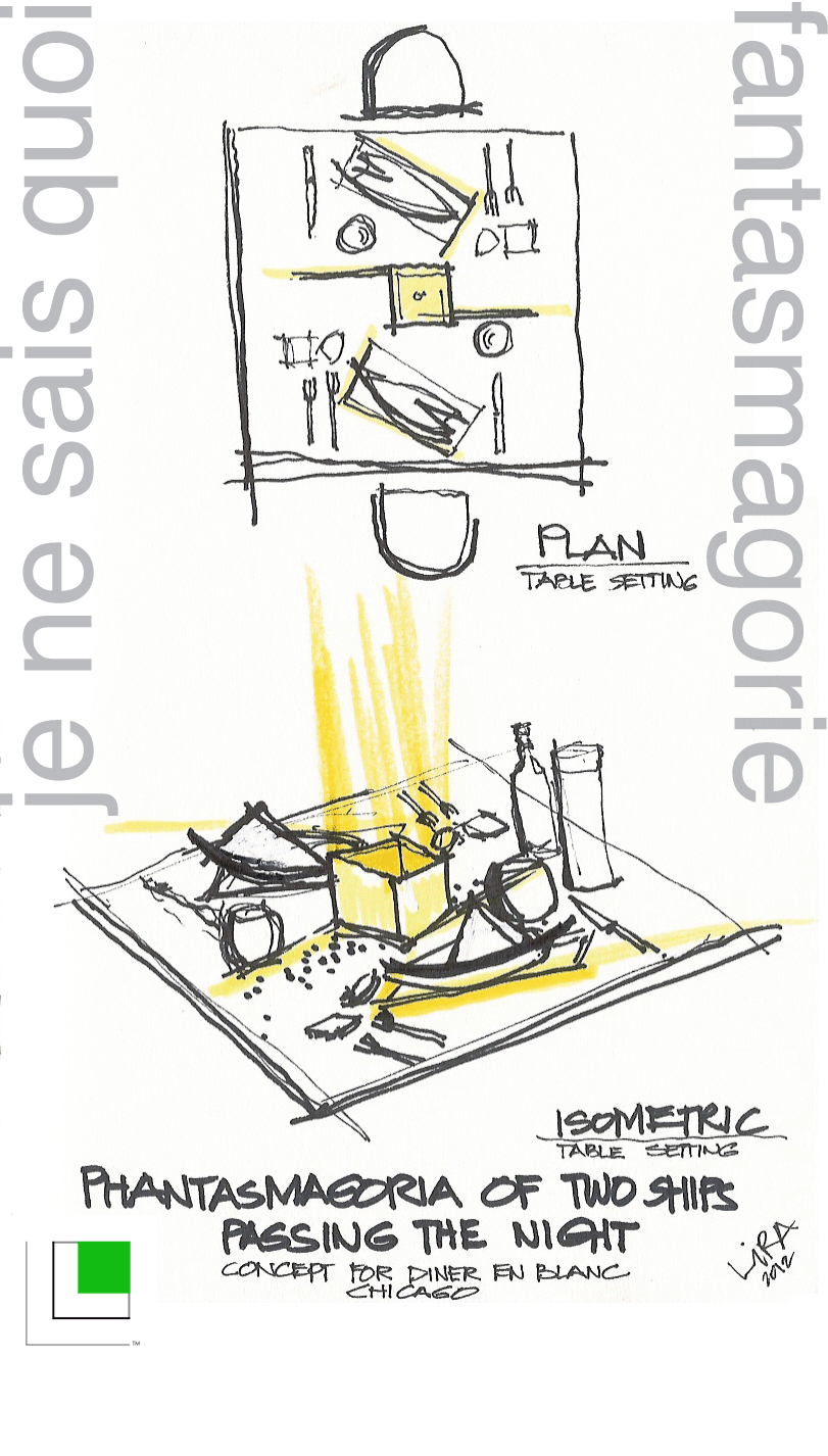 In a parallel situation, “Boats on a port tack shall give way to boats on starboard tack! Sail away!”, replied Dîner en Blanc Chicago when I tweeted my concept sketch for a table setting design.