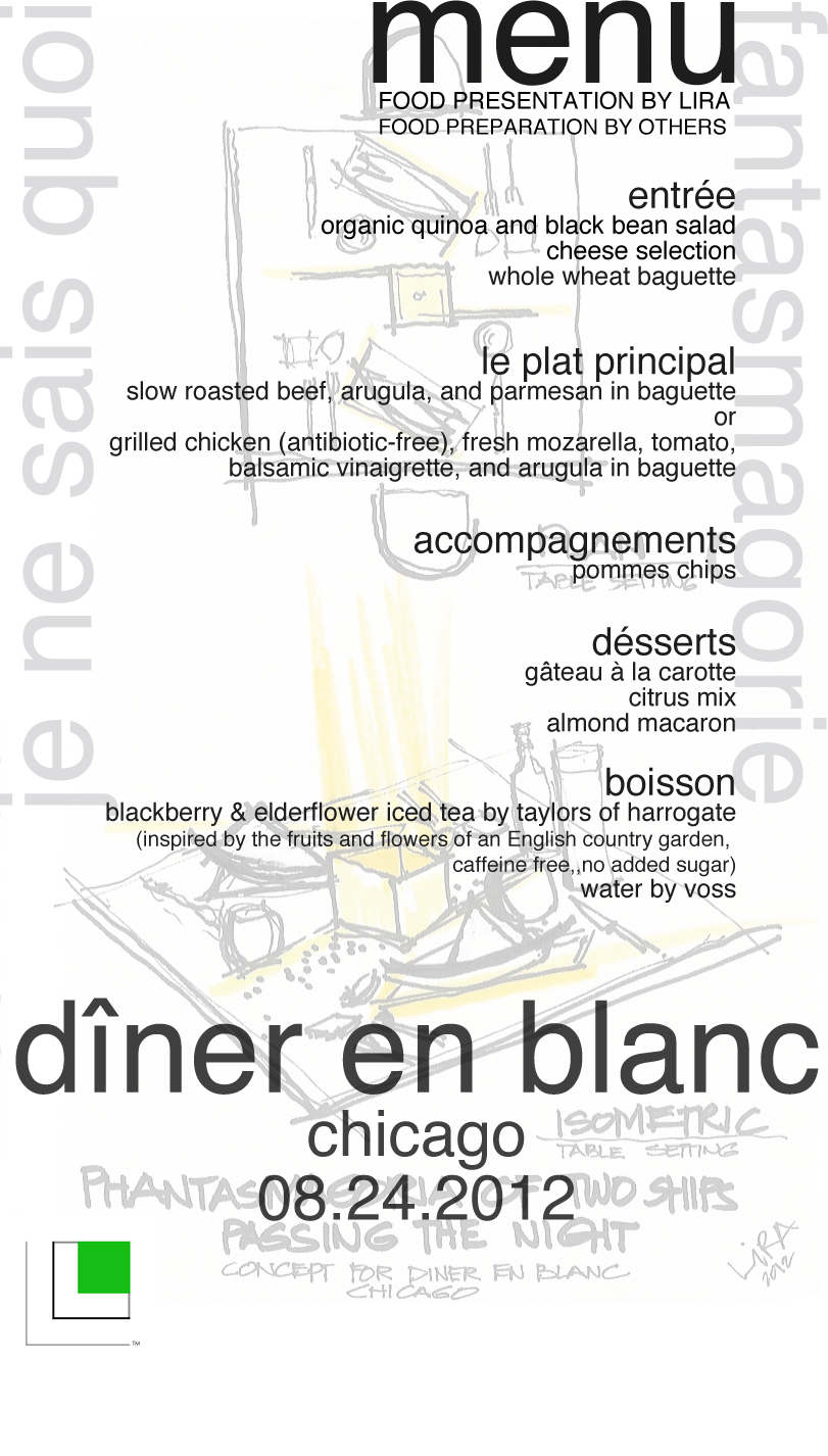 In the case of Diner en Blanc, they required attendees to bring real dinnerware and flatware but at the same time carry their own tables and chairs. Both schools of thought have a resonant