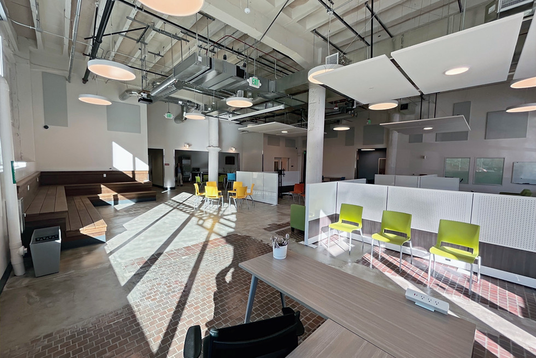 The new health and wellness center for unhoused, young adults features a large communal space