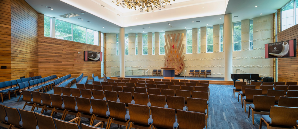 The congregation of Scarsdale Synagogue sought to redesign their sanctuary to meet 21st century accessibility and flexibility needs. The original 3,500 SF sanctuary was barn-like with a wooden silo, an interior space filled with steps, tiered seating, and hard surfaces; these elements made the space inaccessible, acoustically challenged, and dark.