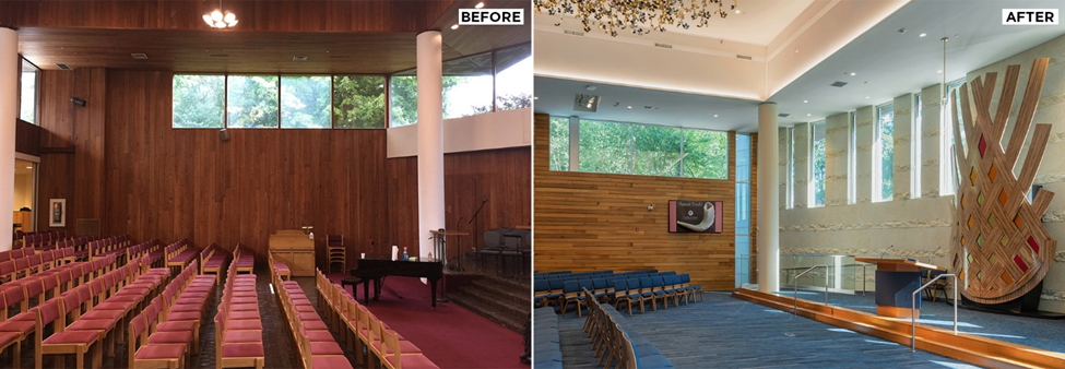 This project offers a replicable approach for faith-based and community spaces adapting to changing needs. Key strategies include prioritizing universal accessibility, replacing fixed layouts with flexible seating, and working within existing structures to remove barriers while preserving key elements.
