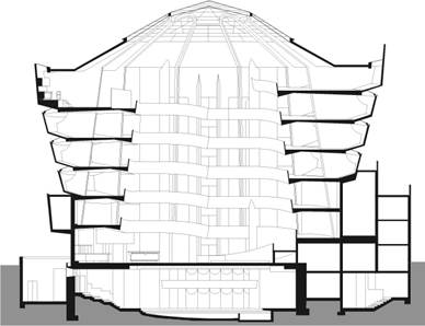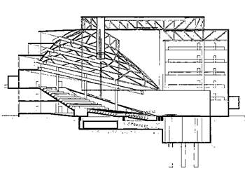 - Study how a shift from plan to section can inform the arrangement of multiple courtrooms and their supportive circulation networks within the courthouse.