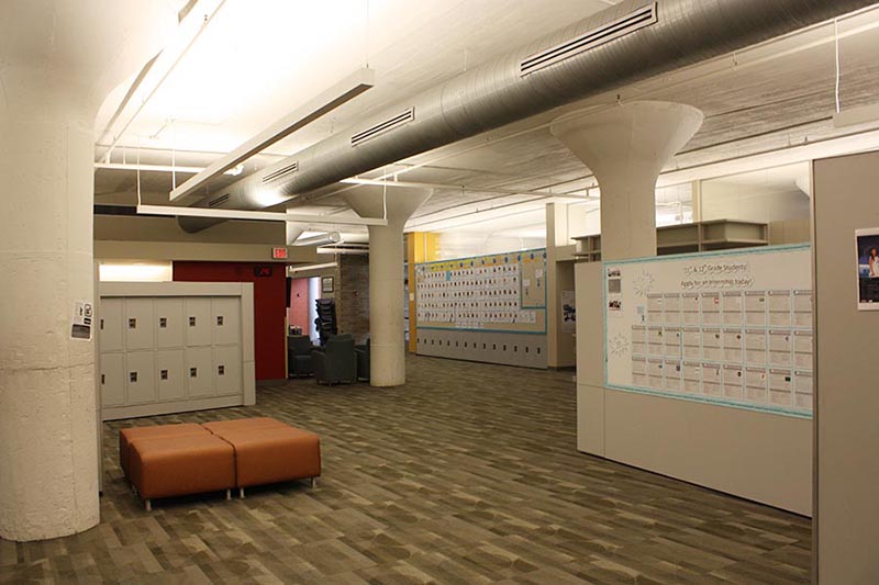 Regarding “Longevity” the school has situated itself in a unique location. The school was built inside the abandoned shell of a furniture factory. Beyond the suitability of the existing building for reuse, this location was selected because of its position at the periphery of downtown Detroit. As a STEAM school, the educators see value in bringing students from their disparate neighborhoods to the rim of downtown where students can connect their daily educational experiences to the professional world occupying the city. This is a physical manifestation and powerful reminder of “The Pipeline” that is talked so much about in STE(A)M circles: the idea that students transfer seamlessly between educational and professional environments.