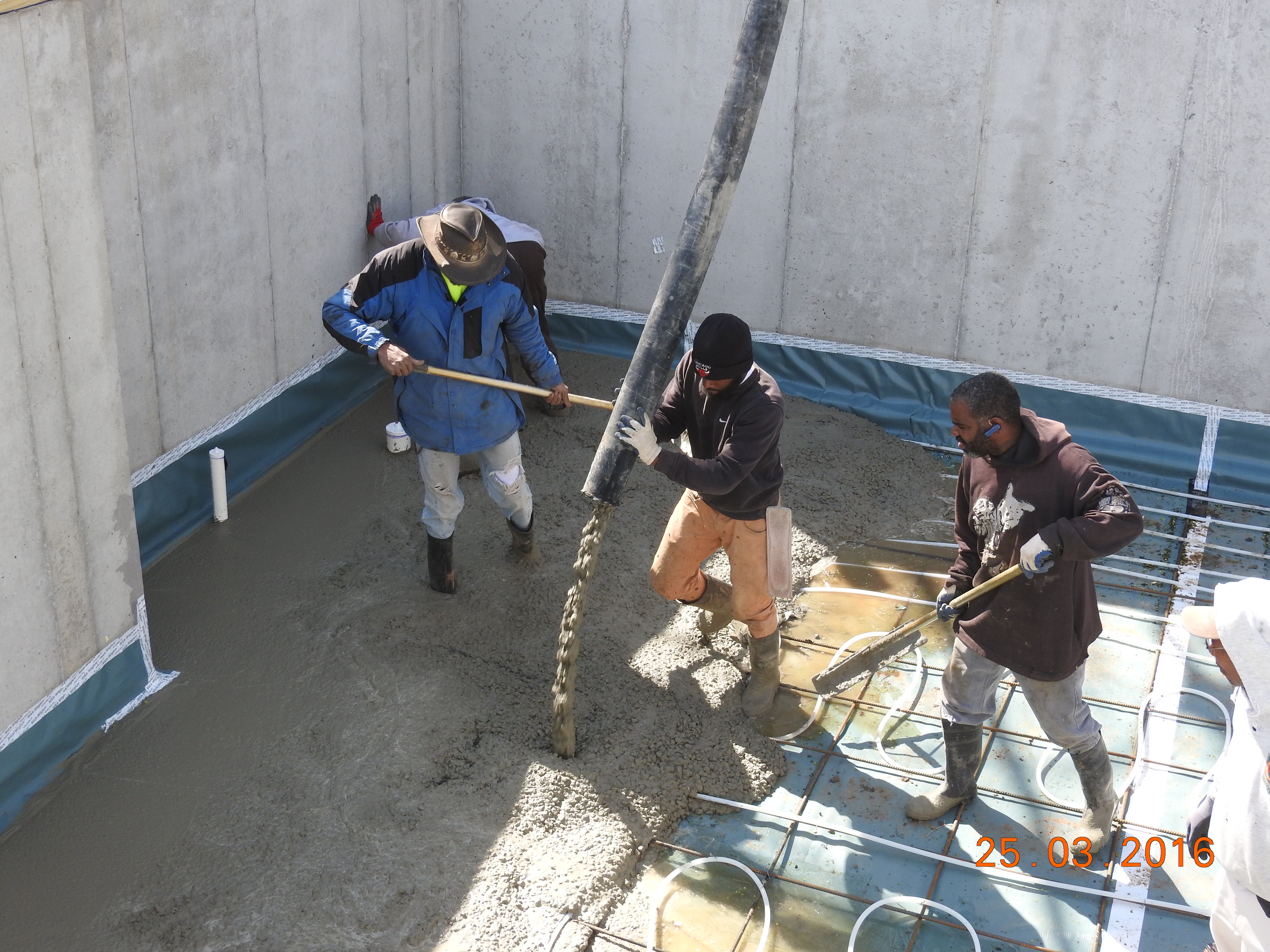 The slab is then poured and troweled.