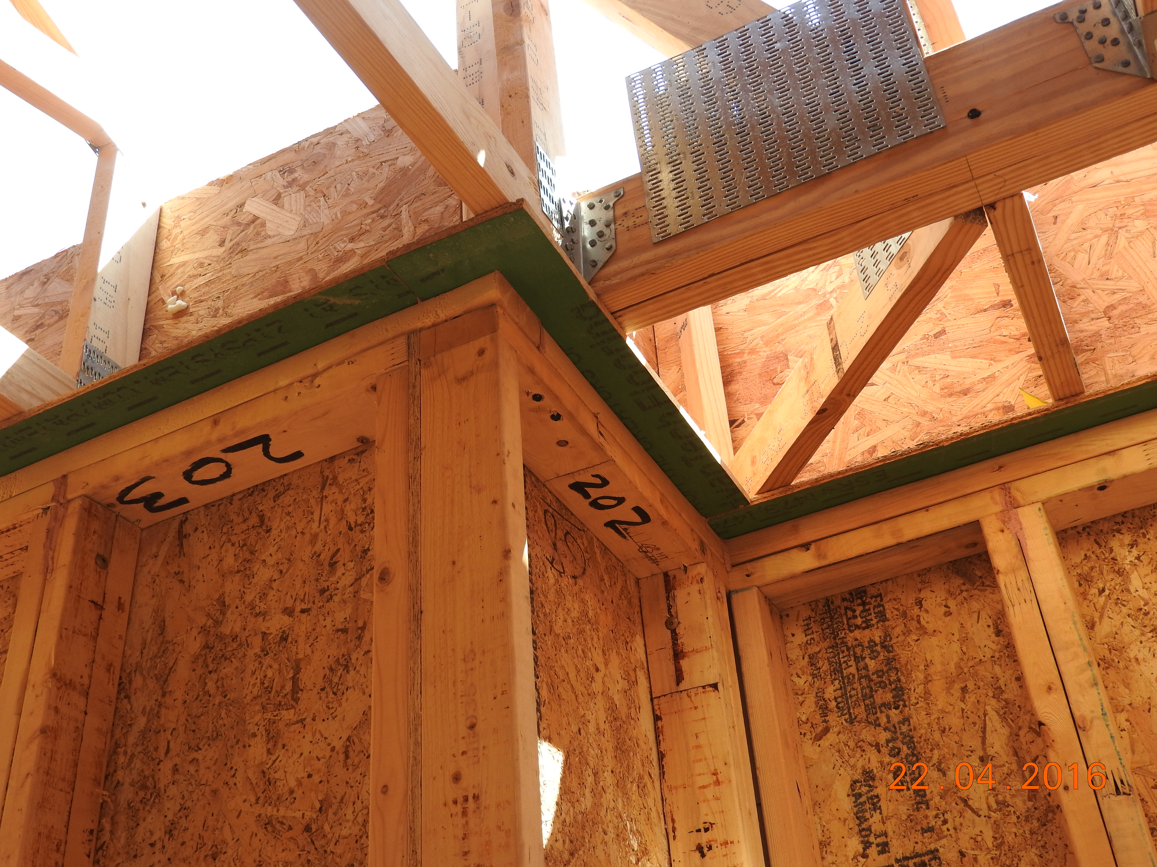 A piece of 7/16 inch Zip Wall panel is placed and sealed on top of the wall for the heel truss to rest on.