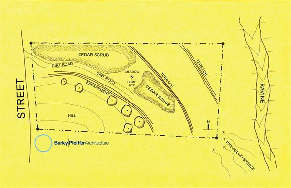 The porch is positioned to catch the prevailing breezes from the Gulf of Mexico to the southeast. The deck is on the north side where it has views of the valley yet is well shaded by the roof, which is “Galvalume” low-heat-absorbing metal to reduce solar heat gain.