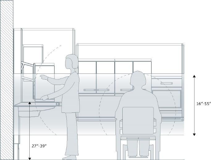 “Universal Design” is a relatively new concept in architecture. Universal Design initiatives seek to create buildings that feature not only easy access but also especially-designed equipment and accessories that meet the needs of the broadest possible range of citizens, including elderly and disabled individuals. Further, when it comes to built-in or wall-mounted equipment, manufacturers are dramatically improving the ease-of-use aspects of items ranging from toilets and sinks to kitchen cabinets and countertops. In other words, both architects and manufacturers are finally recognizing the need to accommodate a population characterized by burgeoning numbers of elderly and people with all manner of physical abilities.