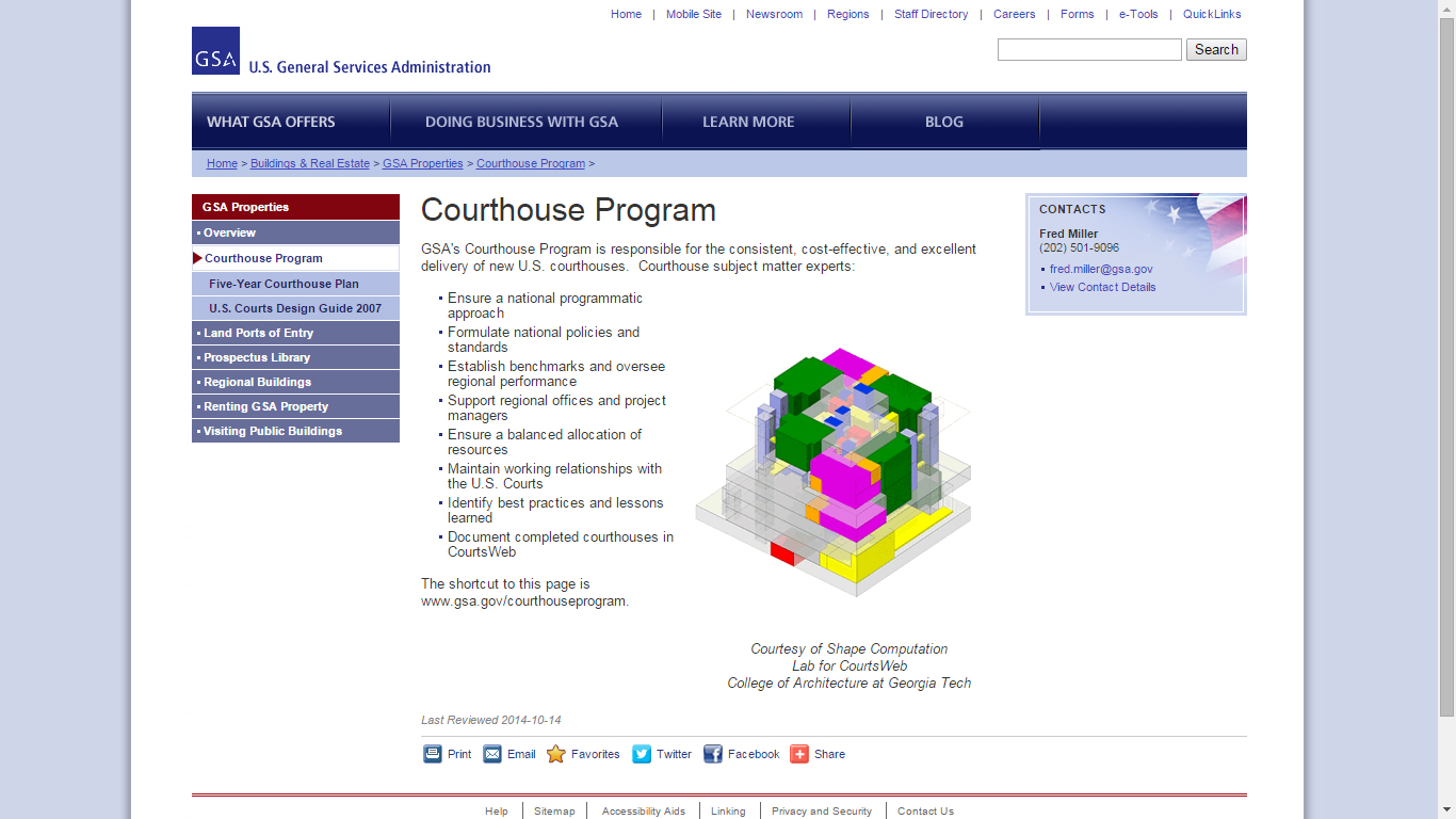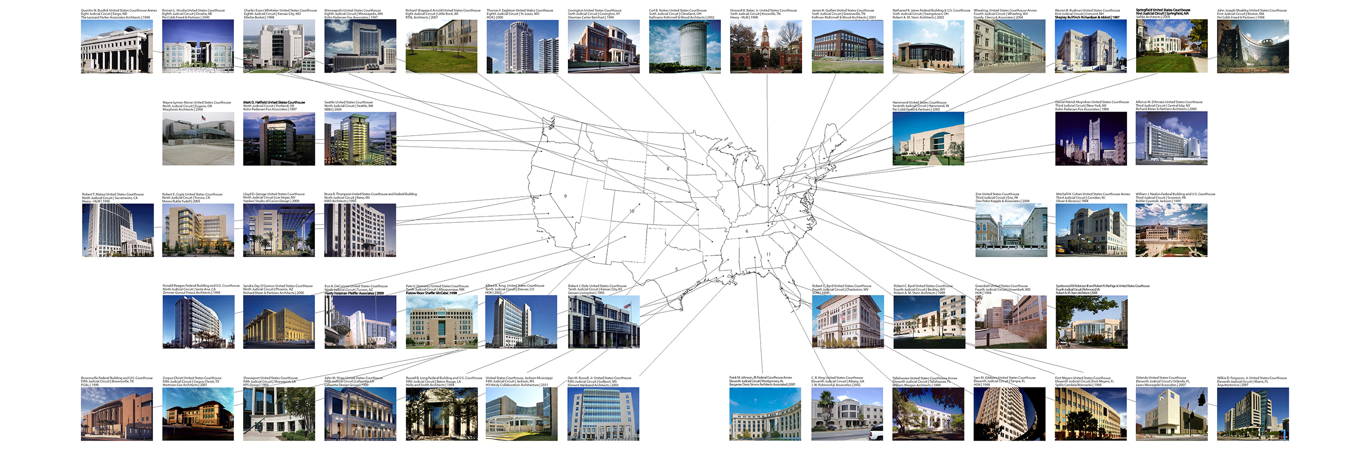 Since the GSA's Design Excellence Program, more than 80 United States Courthouses were designed and built. Out of those courthouses, 54 of them have been documented in CourtsWeb—a research project that has been conducted by Professor Thanos Economou at Georgia Institute of Technology in collaboration with GSA. CourtsWeb is a web-based research database of United States Courthouses.