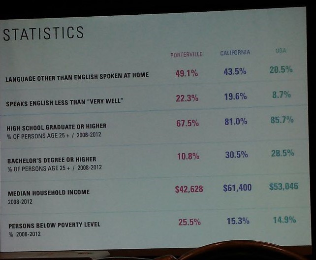See the attached screen shot showing the statistics on the city of Porterville. 62% of the population is Hispanic in Porterville. When language could be a barrier, way-finding becomes ever more important in the design. Also, the Court users may not have access to online forms, which accounts for the higher rate of people visiting the courthouse. With the high poverty rate, public transportation would be essential.