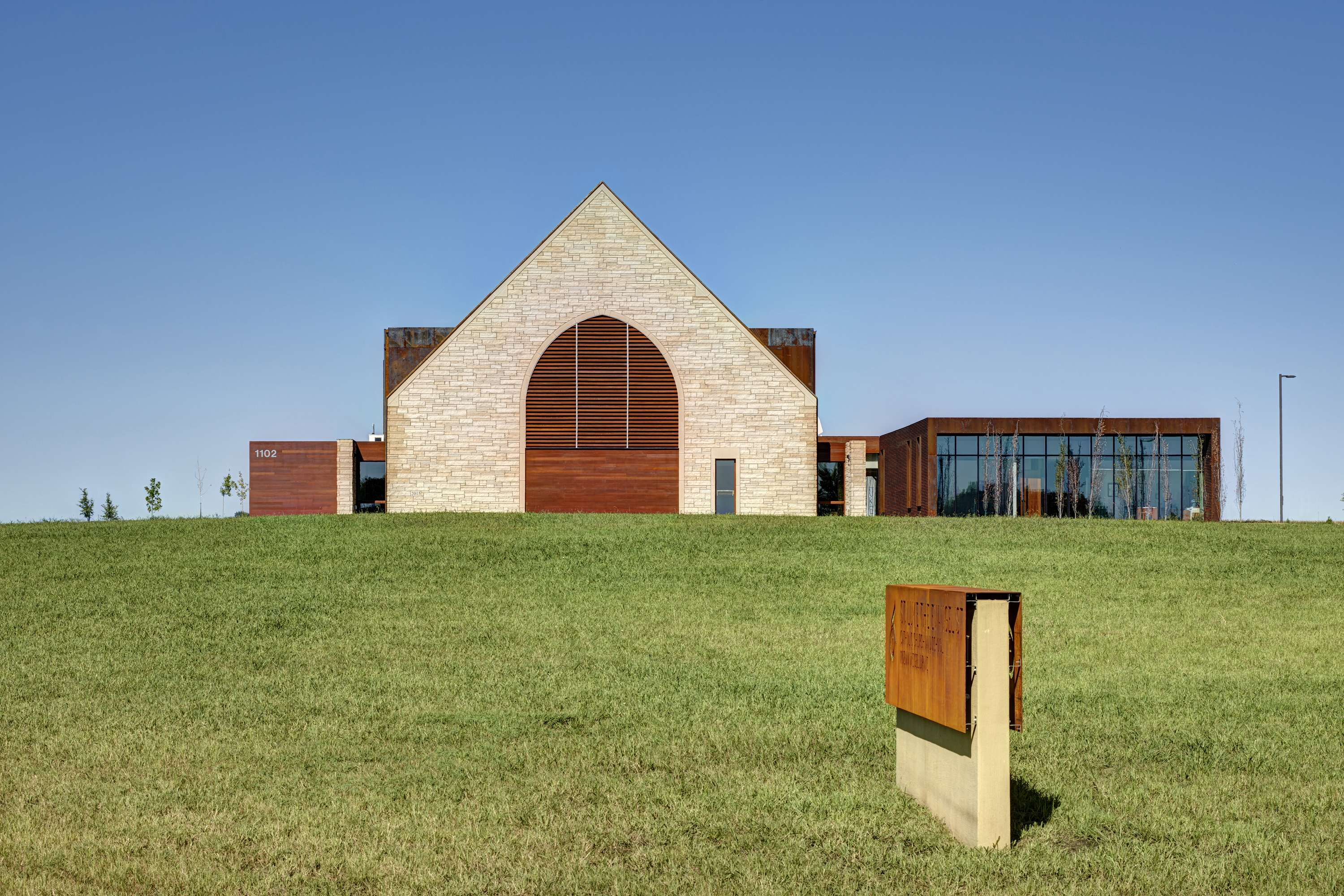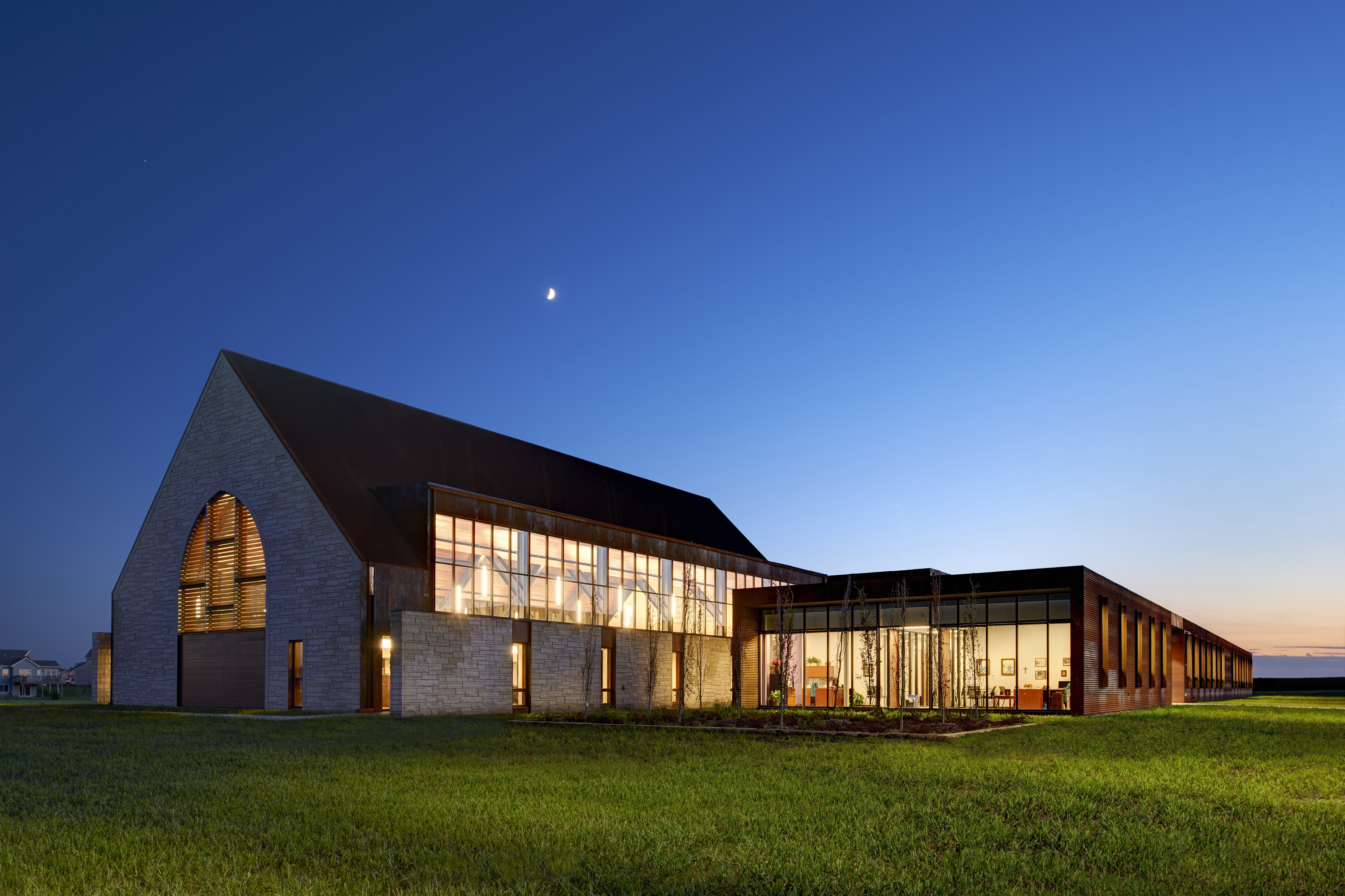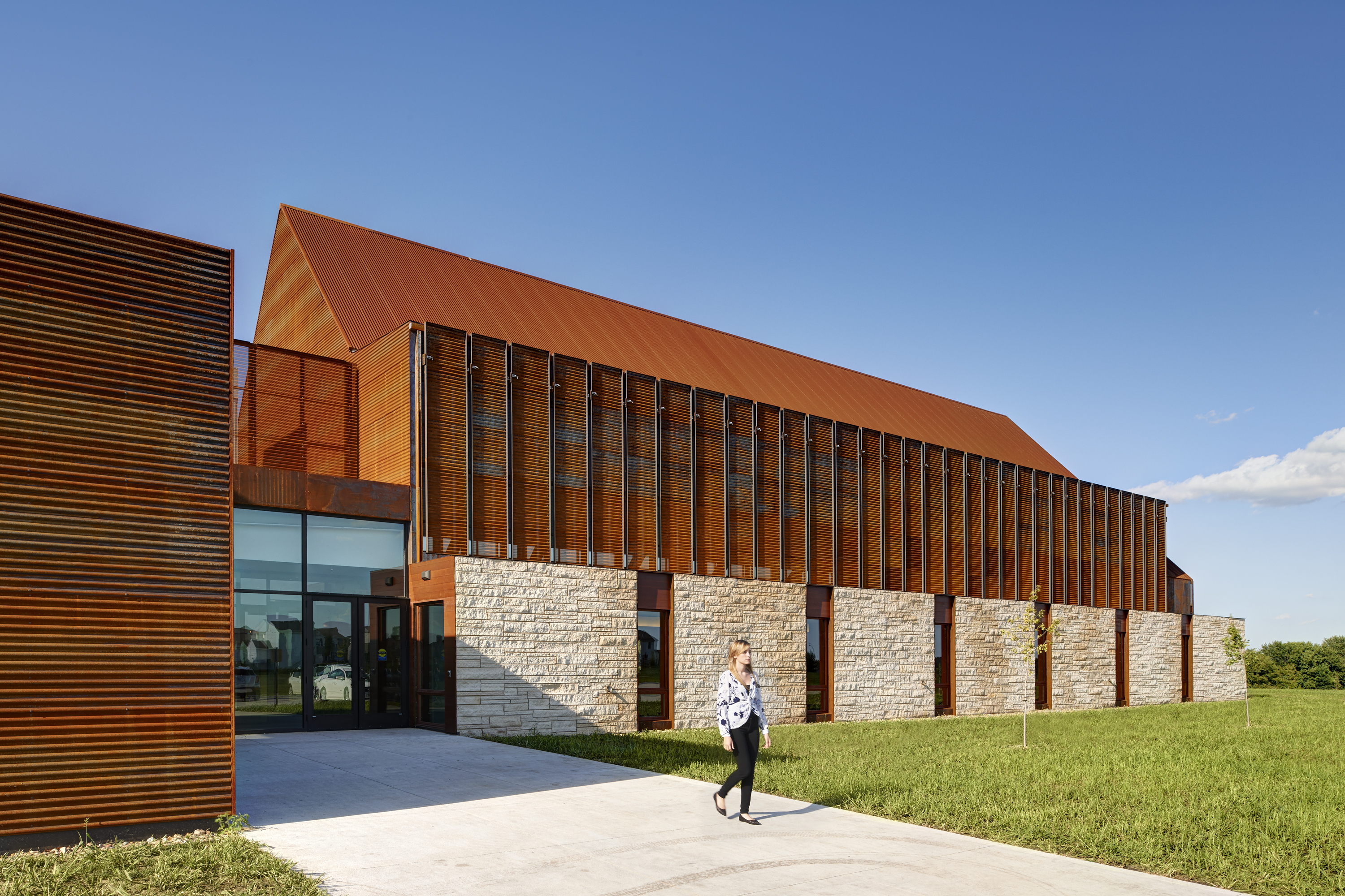 Directly in the heart of Iowa north of Des Moines, Neumann Monson Architects (MNA) designed this 31,805 SF facility which was completed in 2015 by Hansen Company, Inc. The firm states the design is an ‘assemblage of relatively simple, pragmatic forms. Rooted in agrarian building traditions of the Midwest, these forms are executed in native limestone and weathering steel.’1 A combination of these elements are strongly expressed in the parti while maintaining a careful balance of the materials.
