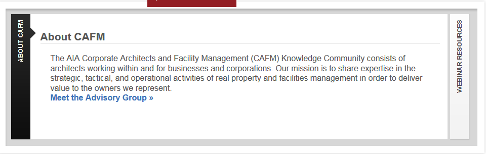 In 2019, the Corporate Architects and Facilities Managers (CAFM) Advisory Group is looking forward to your participation in our upcoming membership survey. We are looking to gathering your thoughts and feedback as we begin to adapt the direction of the CAFM Advisory Group to focus on topics that are most relevant to the wide interests of the 6,000+ members of this Knowledge Community.