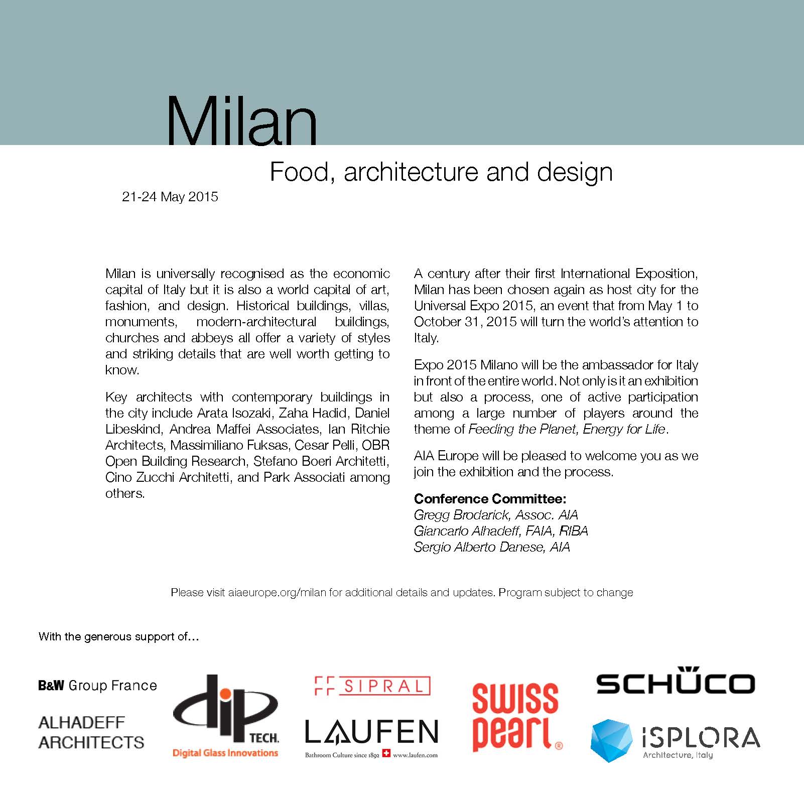 http://aiaeurope.org/events/2015/Milan/index.html to learn more or to sign up for the event.