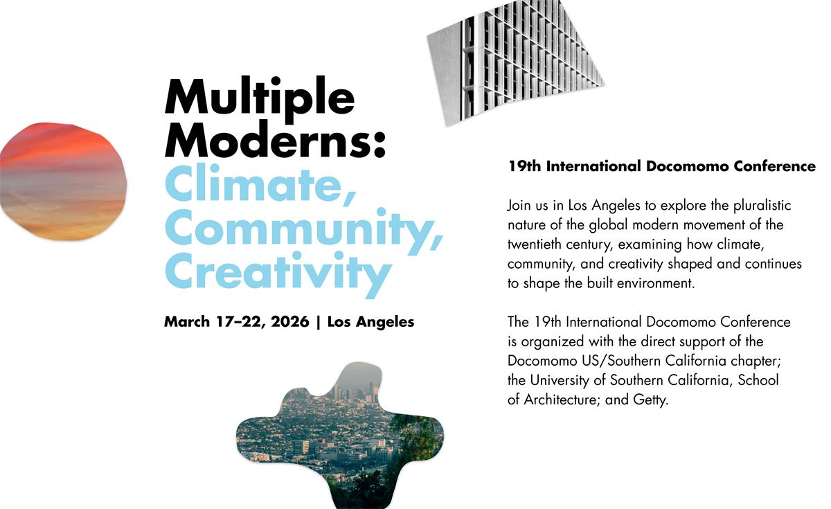 Abstracts are now being accepted for the 19th International Docomomo Conference, taking place March 17-22, 2026 in Los Angeles.