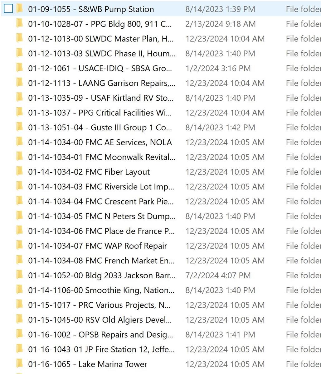 Year 2025, first project of the year and AIA, for American Institute of Architects. This helps keeping the sequential order for the projects. (The icon helps us identify whether it is delivered, a work in progress, or if it was not awarded to the office). As per projects file storage we use internal servers or Google Drive.