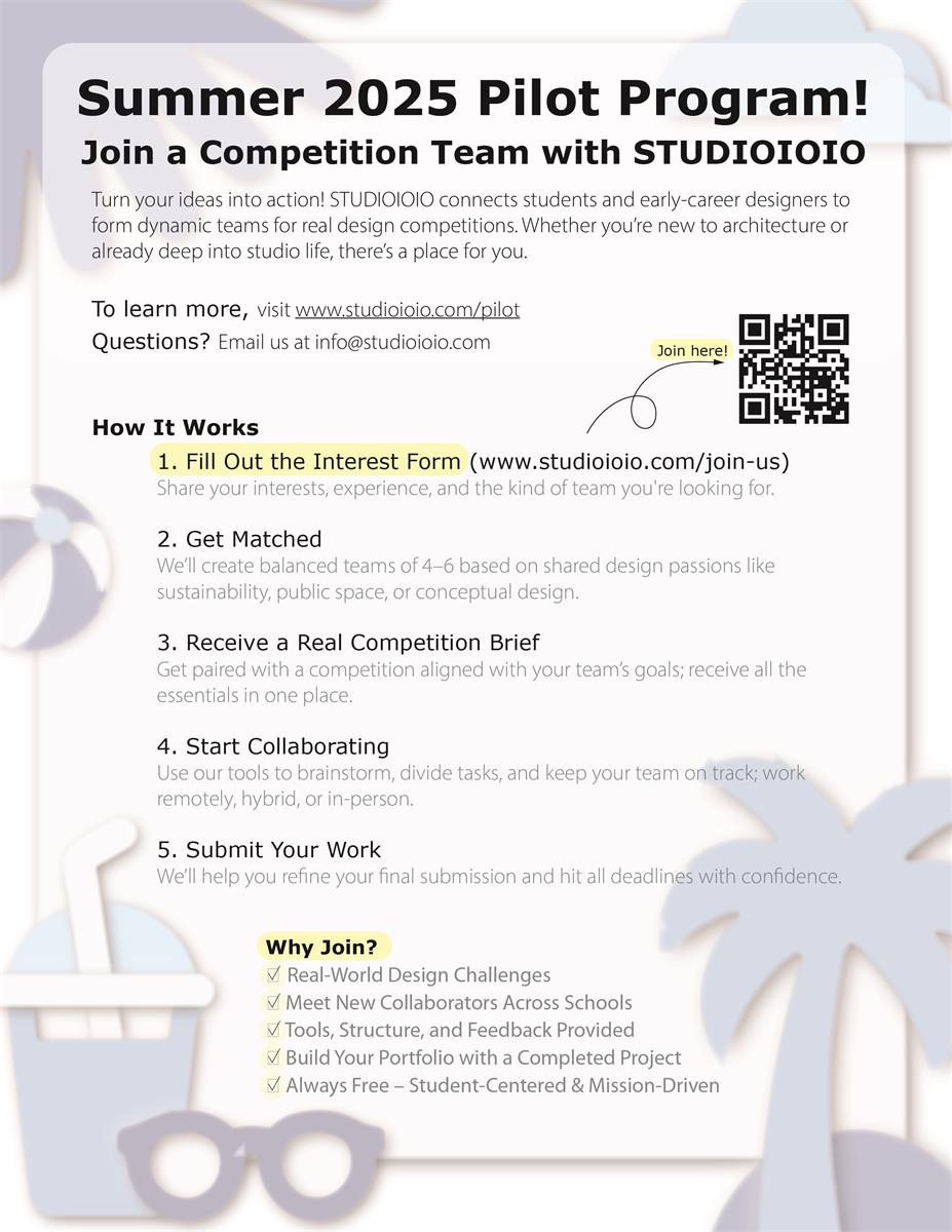 I'm part of this initiative, and for those looking to engage in meaningful design competitions to sharpen your skills, this is a great opportunity. It's free and open-source, connecting architects and designers across the country to form competition teams based on interest, skill set, and availability.