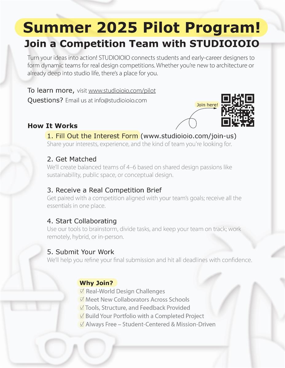 The Summer 2025 Program is now open - join a team, take on real-world design challenges, and build your portfolio with a completed competition project.