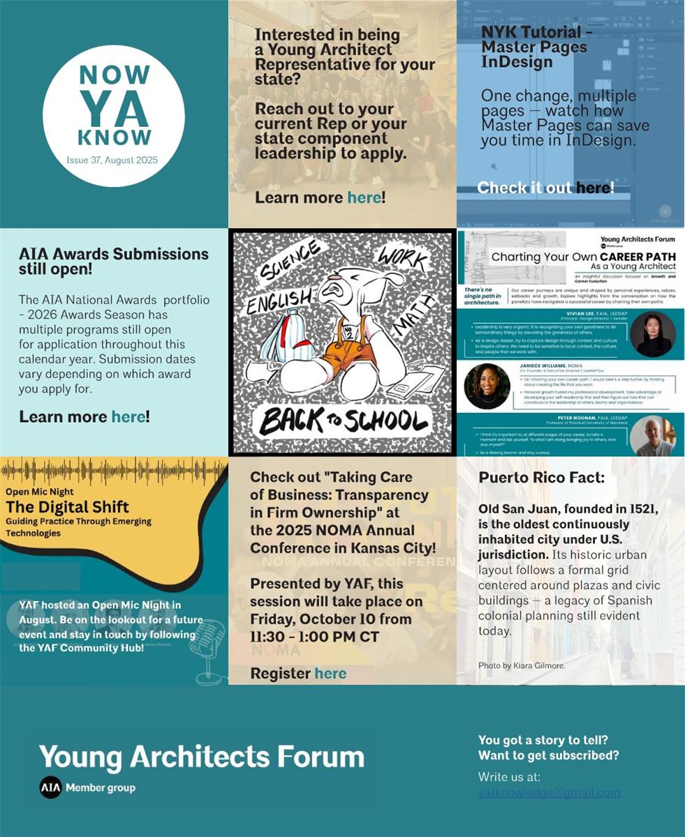 A PDF newsletter to share information, events, and ideas. It also doubles as a report-out to AIA constituents. All links in the document are live.